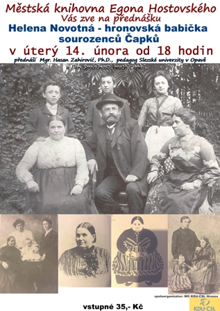 zveme Vás do Hronova na čapkologickou přednášku Mgr. Hasana Zahiroviće, PhD.: "Helena Čapková - ,,hronovská babička sourozenců Čapků". -