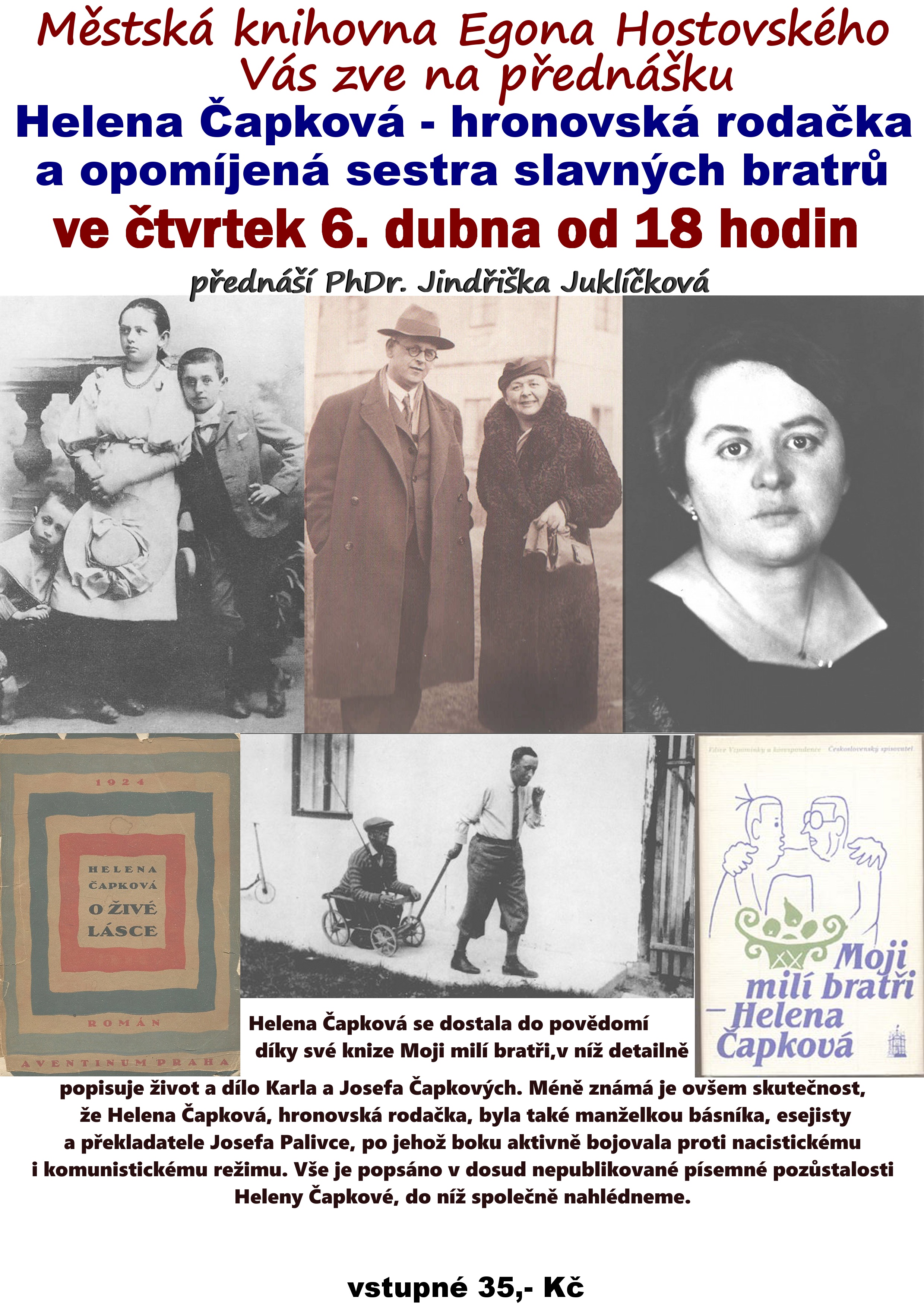 Přednáška PhDr. Jindřišky Juklíčkové v hronovské Městské knihovně dne 6.4.2017 od 18:00: