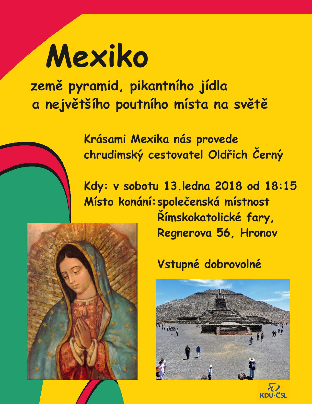 MO KDU-ČSL Hronov Vás zve na přednášku chrudimského cestovatele Oldřicha Černého o Mexiku. Více v